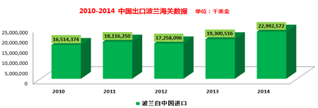 2015年波蘭進口中國產(chǎn)品達(dá)223.8億美金。中國已成為波蘭進口第二來源國(14年第四進口來源國)。