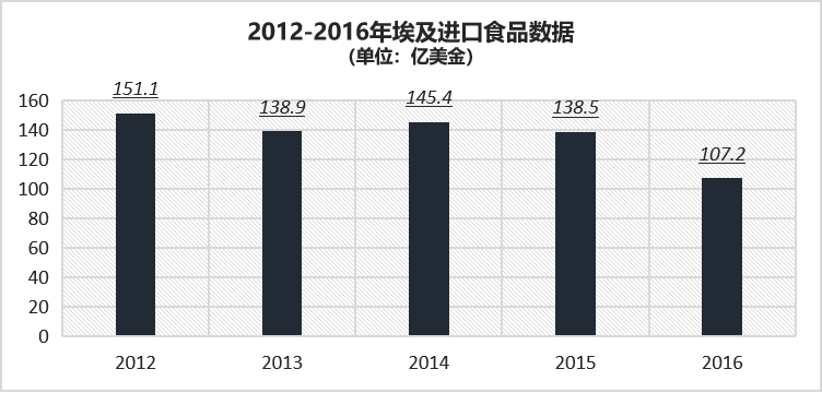 近五年埃及食品進(jìn)口數(shù)據(jù):