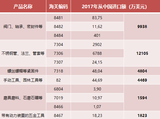 從中國進口不銹鋼管、法蘭、管套等等五金工具產(chǎn)品占比排名第一!