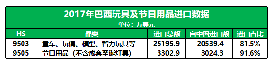 巴西對進(jìn)口玩具和節(jié)日產(chǎn)品的需求巨大,2017年進(jìn)口總額高達(dá) 2.85億美元;