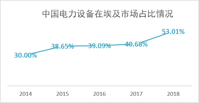 2018年中國電力設(shè)備在埃及市場占比創(chuàng)5年來的新高,占比達53.01%,較2014年增長了70.7%。目前中國已成為埃及主要電力設(shè)備的第一進口來源國。中國電力產(chǎn)品在價格和功能上也更適應(yīng)埃及目前的國情。