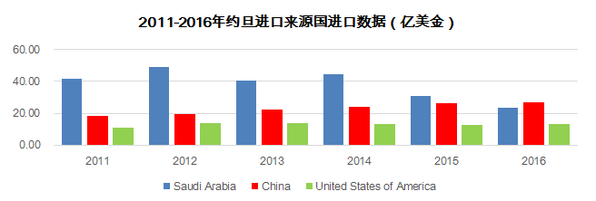 據(jù)約旦國家統(tǒng)計局數(shù)字,2016年約旦總進口額為192.61億美元,同比下降了5.92%;