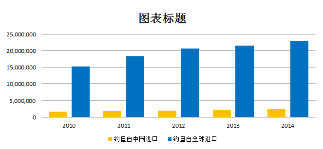 自中國進口總額到達26.98億美元,同比增長了2.19%;