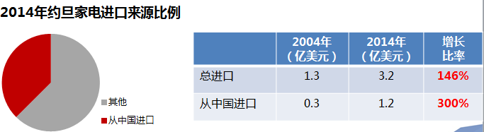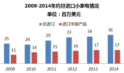2014年約旦進口約3.2億美元的家電產(chǎn)品,其中超過1.2億來自中國。中國是約旦最大的家電產(chǎn)品進口來源國