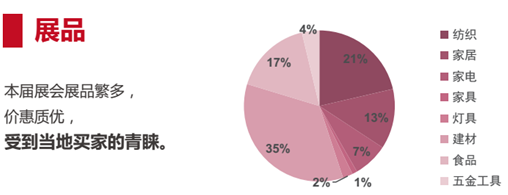 此次展會展出面積10000 平方米,展品20000 多種,展商200 家,累計成交額高達3473萬美元。展會吸引了來自約旦及周邊多個國家的 8533名專業(yè)觀眾前來參觀、洽談和采購。