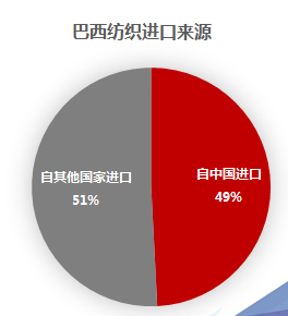 2016年巴西紡織行業(yè)進口額超49億美金,其中進口中國紡織品超24億美金,占比達到49%。中國是巴西紡織進口最大來源國