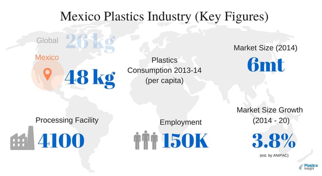 2014-2020年期間,墨西哥塑料行業(yè)的預(yù)期年均增長率為 3.8%